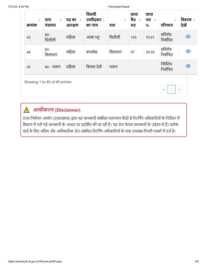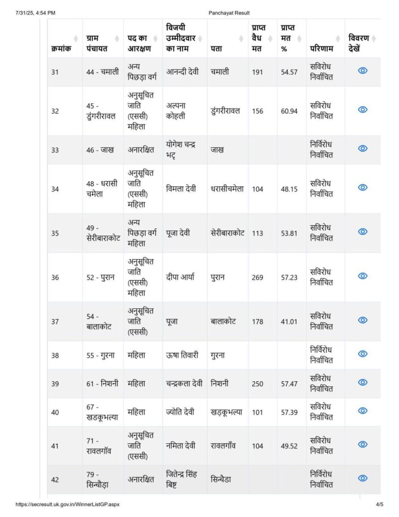 छाना पांडे पंचायत से गौरव पांडे विजयी रहे, वहीं मझेड़ा की कमान कपिल जोशी को मिली।