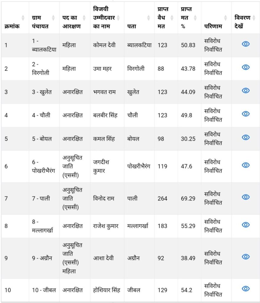 जनता ने पूरी सजगता के साथ मतदान किया और नए नेतृत्व को जिम्मेदारी सौंपी। अन्य पंचायतों के परिणाम भी जल्द आने की संभावना है।