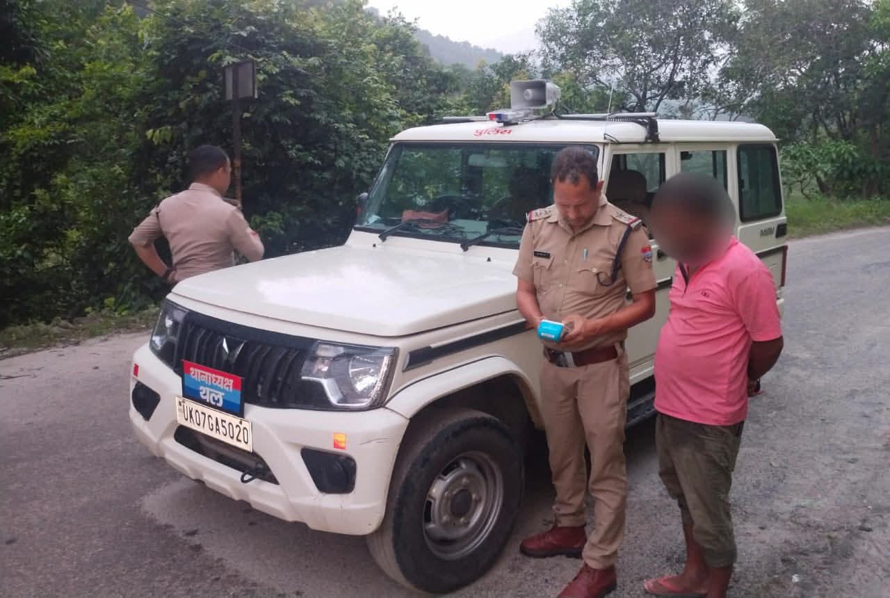 📍 धनौड़ा स्थित होटल मनदा से संचालक मनोज भण्डारी को पकड़ा गया।