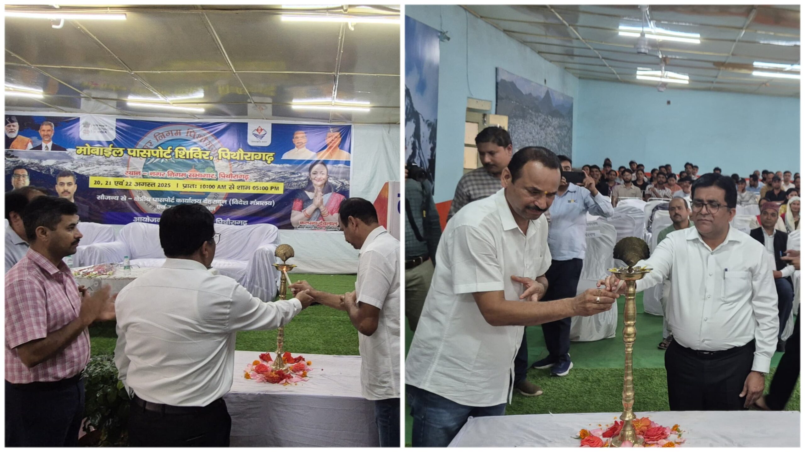 शिविर का उद्घाटन जिलाधिकारी विनोद गोस्वामी, दर्जा राज्य मंत्री गणेश भंडारी, क्षेत्रीय पासपोर्ट अधिकारी विनय शंकर पांडेय और नगर आयुक्त डॉ. दीपक सेनी ने संयुक्त रूप से दीप प्रज्वलित कर किया।