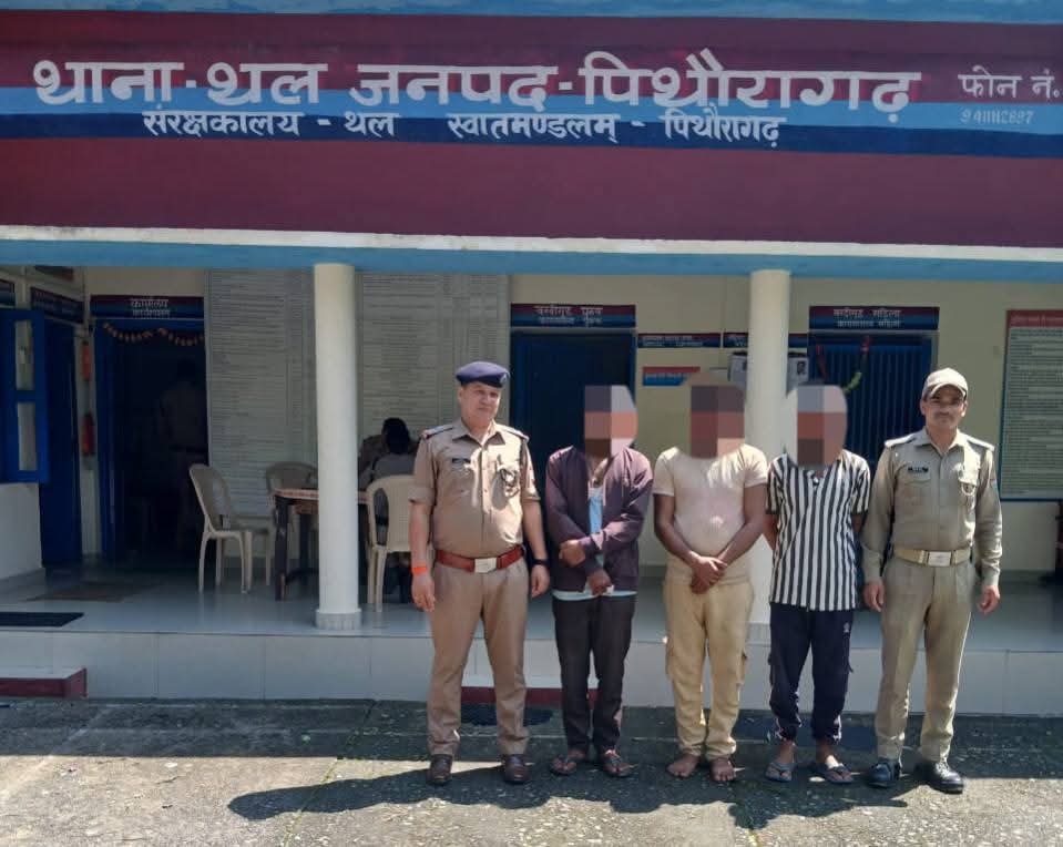 वहीं, थाना थल पुलिस ने कोटकाड़ी क्षेत्र में आपसी झगड़े और उत्पात मचाने वाले तीन लोगों — उमेश चन्द्र जोशी, भुवन चन्द्र जोशी और गणेश जोशी — को हिरासत में ले लिया।