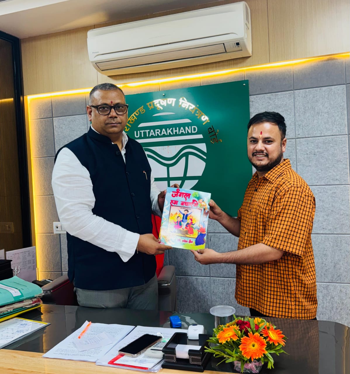 चर्चित बाल साहित्यकार इंजी. ललित शौर्य ने मुख्यमंत्री के विशेष सचिव एवं उत्तराखंड प्रदूषण नियंत्रण बोर्ड के सदस्य सचिव डॉ. पराग मधुकर धकाते से भेंट कर उन्हें अपनी पुस्तक “जंगल हम बचाएंगे” भेंट की। इस मुलाकात के दौरान शौर्य ने डॉ. धकाते को अपने बाल साहित्यिक कार्यों और पर्यावरण विषयों पर केंद्रित लेखन के बारे में अवगत कराया।