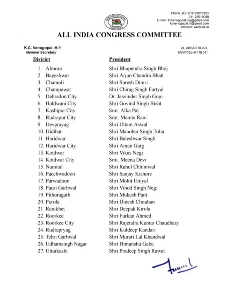 देर रात एआईसीसी महासचिव केसी वेणुगोपाल द्वारा जारी सूची के बाद पिथौरागढ़ में कार्यकर्ताओं में खुशी की लहर दौड़ गई।